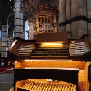 SIENA. L’organo della Cattedrale, costantemente sottoposto a controlli ordinari e accordature che ne assicurano la migliore efficienza e al tempo stesso il rispetto del considerevole materiale storico, si presentava in condizioni d’integrità tali da non richiedere un restauro completo. Tuttavia, l’azione congiunta del tempo, dell’inevitabile deposito di polveri e dell’usura delle parti più delicate ha reso necessario un intervento straordinario che ha comportato il completo smontaggio dell’intero strumento.
