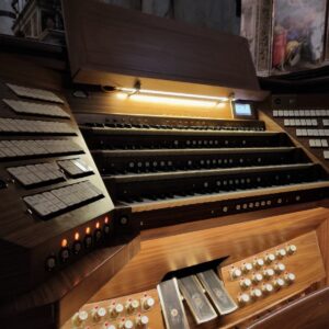 Con questo intervento, oltre a tutte le azioni di pulitura, rimessa in forma e ripristino di parti non funzionanti, nonché tutela delle numerosissime canne antiche inglobate nello strumento moderno, su progetto dell’organista titolare Cesare Mancini è stato aggiunto un poderoso registro di pedale, la Controbombarda 32’, e sono stati inseriti alcuni effetti ottenibili tramite le attuali tecnologie informatiche.