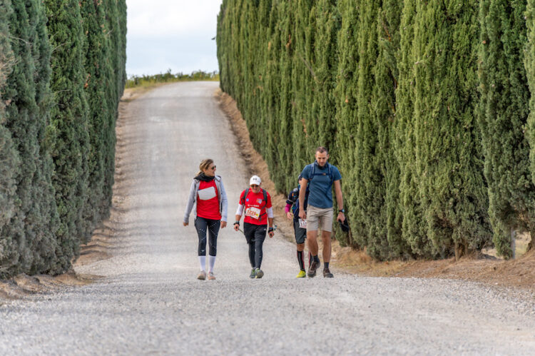 Percorsi diversi ma accomunati dalla stessa formula: una camminata non competitiva nella bellezza. Il percorso più lungo è quello che va da Siena ad Acquapendente, 120 chilometri non stop, camminando anche di notte. Si parte dal centro storico della città del Palio e si prosegue lungo le strade bianche della Val d’Arbia, per toccare Monteroni, Ponte d’Arbia e Buonconvento. L’itinerario procede poi tra le colline della Val d’Orcia, Patrimonio dell’Unesco, passando per il famoso borgo termale di Bagno Vignoni, poi Radicofani e infine Acquapendente. Un tragitto lungo che si effettua anche di notte armati di torce.