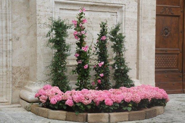 PIENZA. Dall’alto delle finestre del Museo Diocesano, l’allestimento floreale realizzato in Piazza Pio II (davanti al Duomo) mostra con quanta arte e maestria sia stata realizzato il giardino, che avrà il suo culmine nella rinomata “Pienza e fiori”, giunta quest’anno alla sua trentaseiesima edizione.