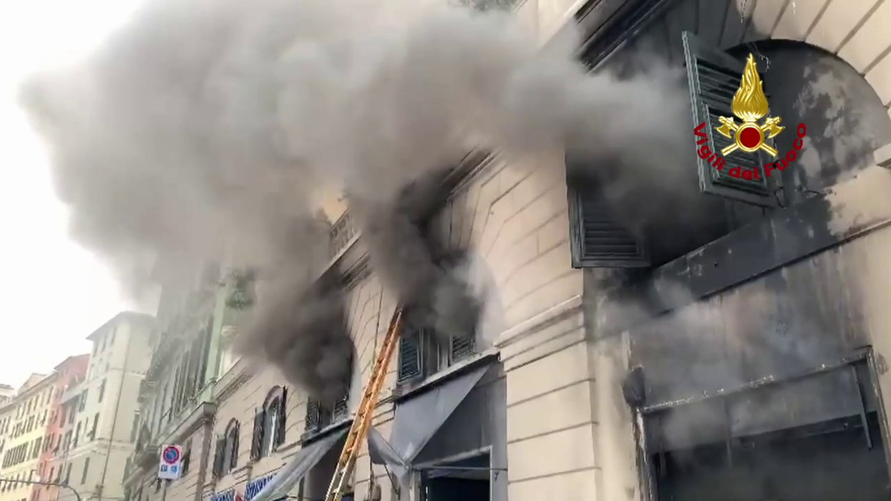 Densa nuvola di fumo per un incendio in un negozio a Genova