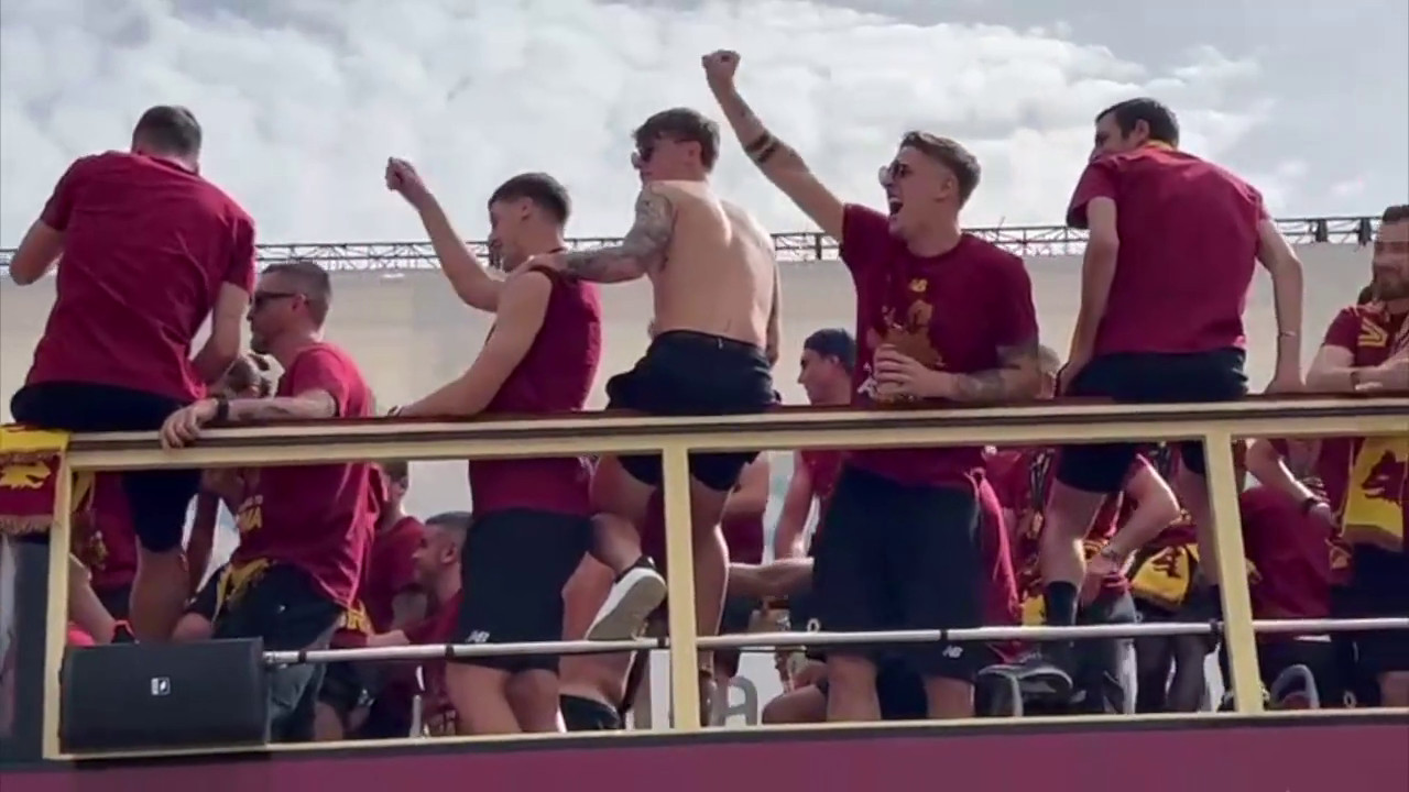 Festa Conference, giallorossi sul bus scoperto per le strade di Roma