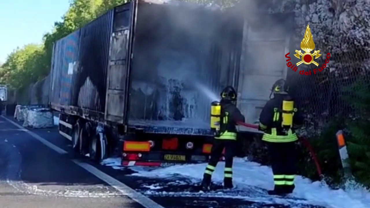 Incendio mezzo pesante che trasportava plastica nel triestino