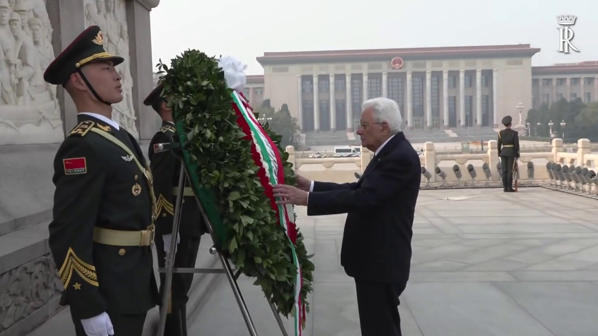 Pechino, Mattarella depone corona al Monumento degli Eroi del Popolo