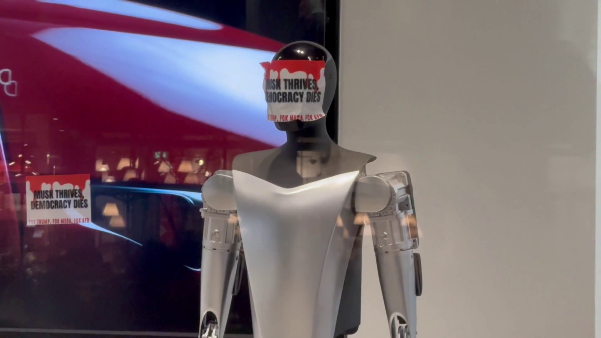 Protesta contro Trump e Musk a Milano, imbrattato uno store di Tesla