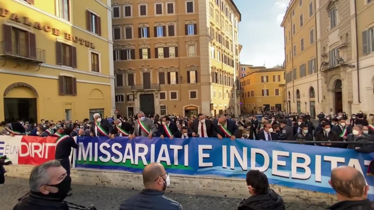 Protesta dei Sindaci calabresi a Roma sotto Palazzo Chigi