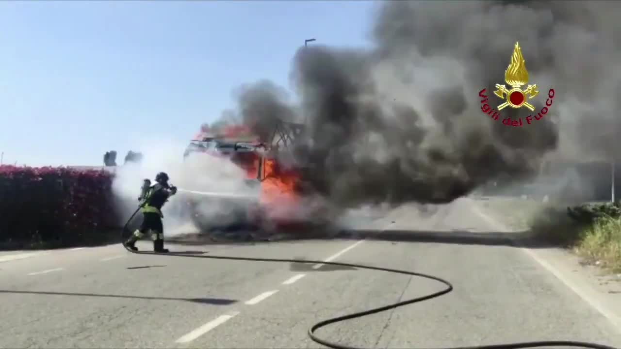 Si incendia un tir, enorme colonna di fumo nero