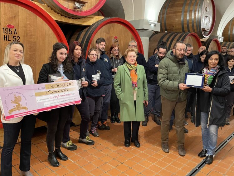 MONTEPULCIANO. A seguito dell’accordo integrativo aziendale firmato nel dicembre 2022 tra Flai Cgil Siena e Vecchia Cantina di Montepulciano, in cui si prevedeva anche un fondo a sostegno di associazioni sociali del territorio per aiutare chi ha più bisogno, lunedì scorso si è svolto nella bottaia dell’Azienda l’incontro tra i lavoratori, il Presidente Andrea Rossi, la Vice presidente Ilaria Chiasserini e le rappresentanti dell’associazione ‘Iosempredonna’ per la donazione, da parte degli stessi lavoratori e della Presidenza con l’approvazione all’unanimità da parte del CdA, di 3.000 euro in memoria della lavoratrice Katia Meacci scomparsa prematuramente qualche mese fa.